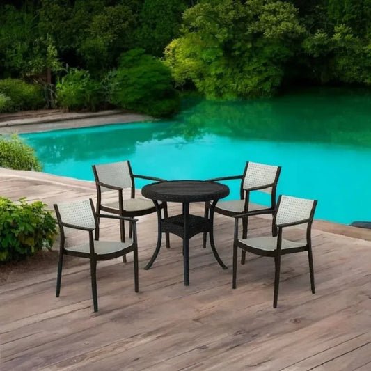 طقم للحدائق معدن و راتان، 5 قطع