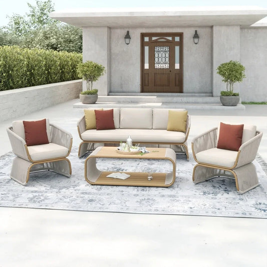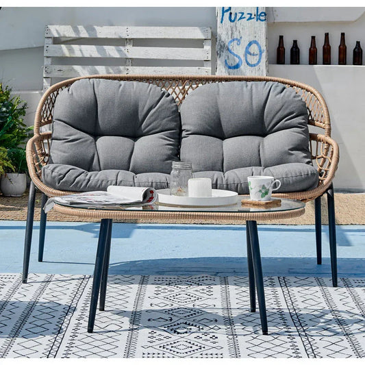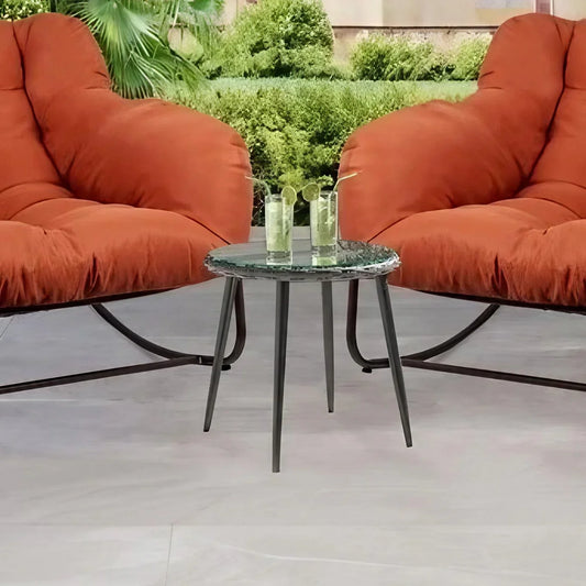 طقم كراسي هزاز خارجي مع ترابيزة خارجية ستيل ورتان، 3 قطع