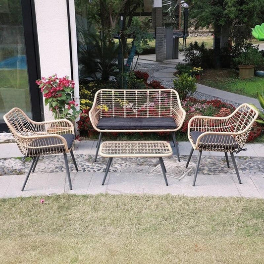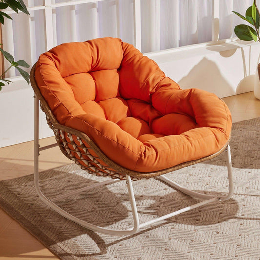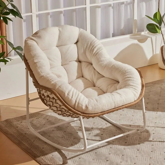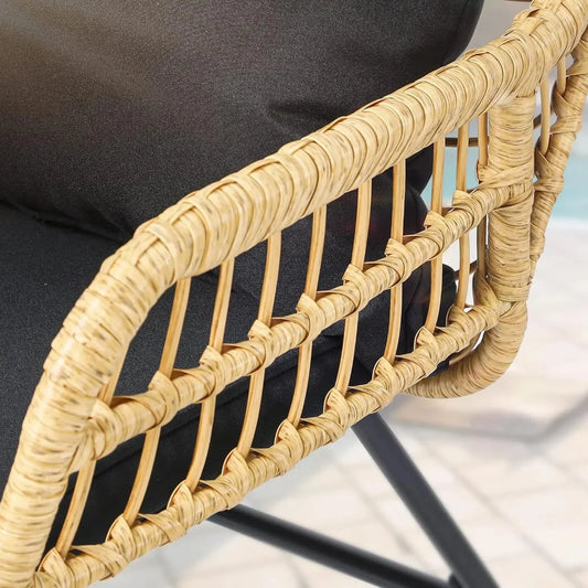 طقم كراسي هزاز خارجي مع ترابيزة خارجية ستيل وراتان، 3 قطع