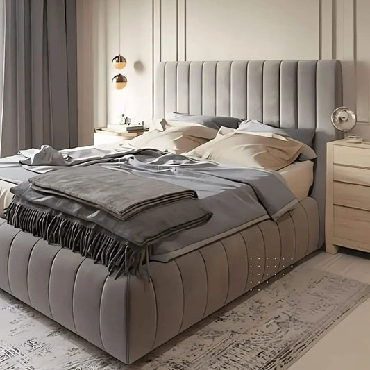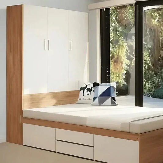 سرير كوين مع درج خشب كونتر ، 140*200*120 سم