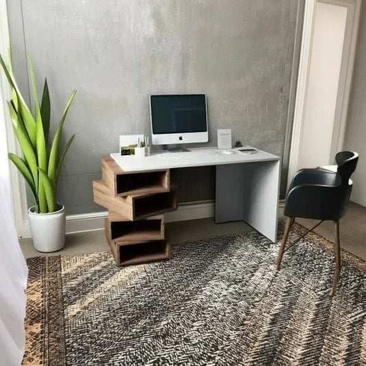 مكتب بمكتبة جانبية ام دي اف ومعدن، 120*60*160 سم