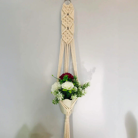 مكرمية حامل أواني زرع قطن و موسكي، 20*75 سم