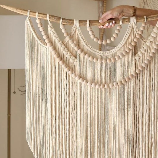 مكرمية حائط قطن وخشب موسكي، 50*100 سم