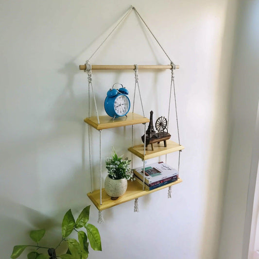 وحدة أرفف مكرمية قطن و خشب موسكي، 33*14*80 سم