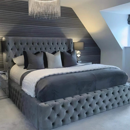 سرير كينج مع درج خشب كونتر ، 160*200*120 سم
