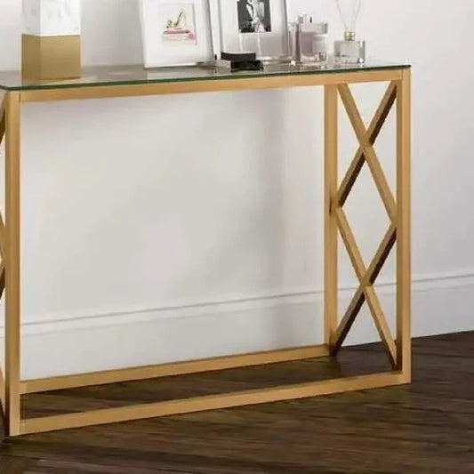 • كونسول معدن بسطح زجاج، 100*30*90 سم