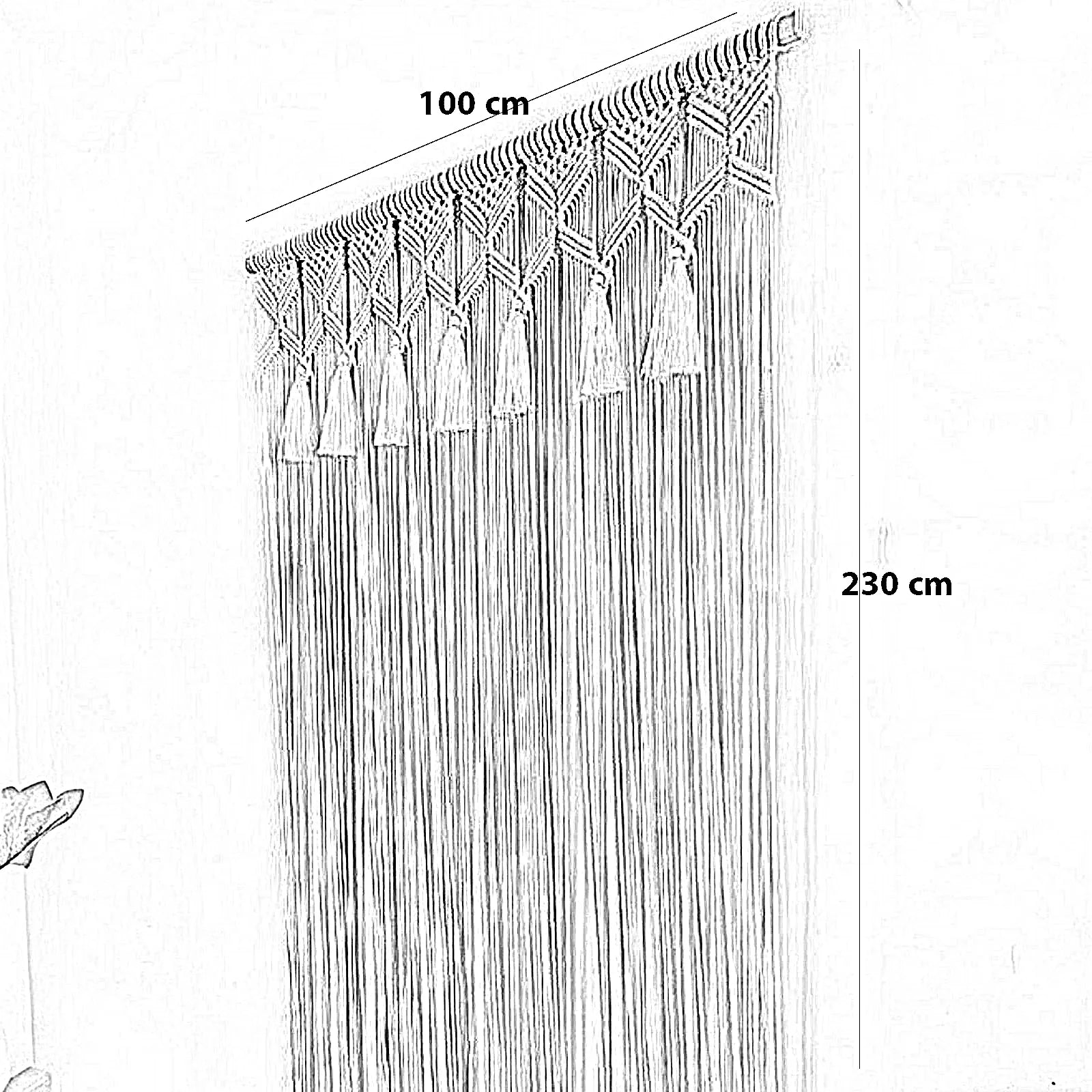 ستارة مكرمية قطن وخشب طبيعي، 100*230 سم