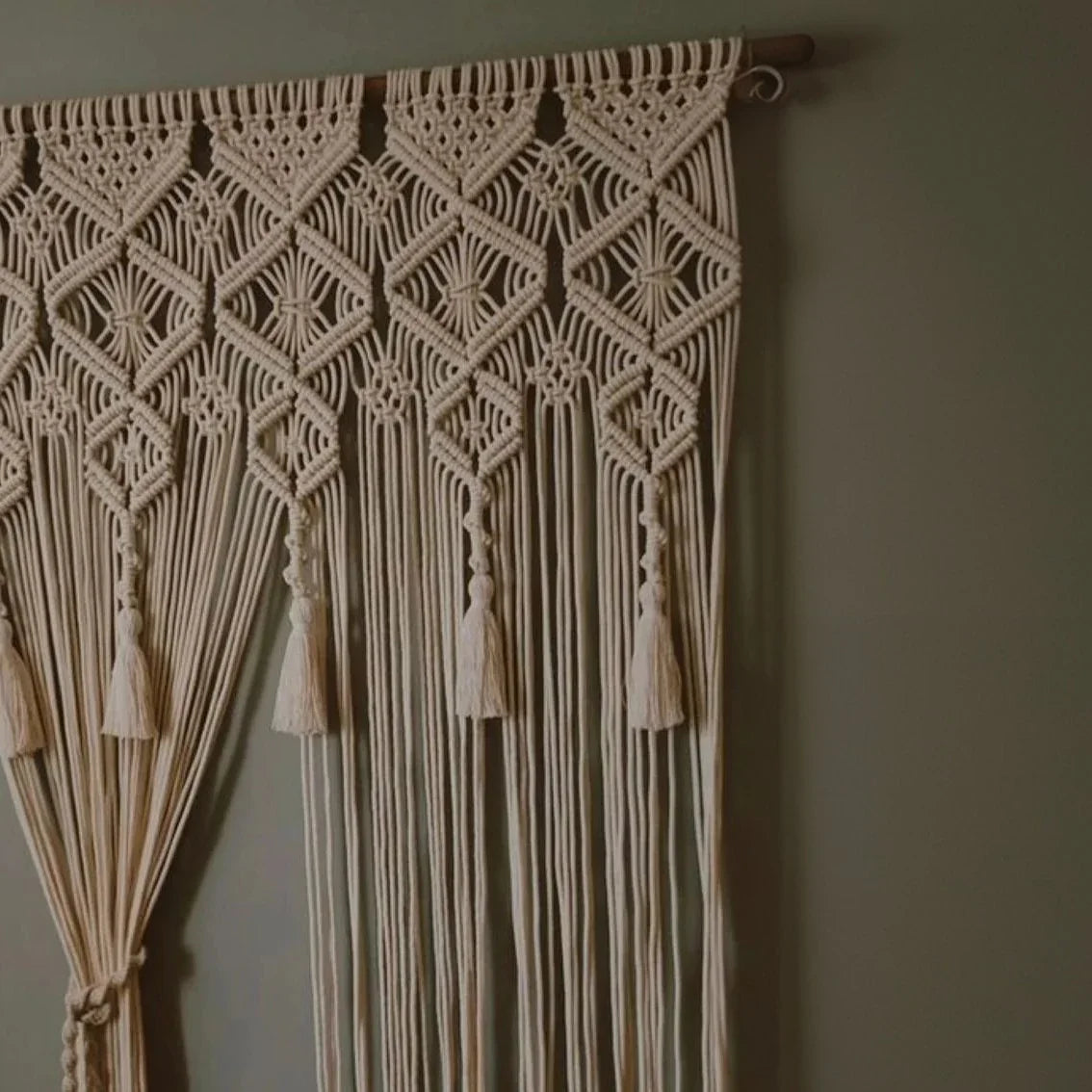 ستارة مكرمية قطن وخشب طبيعي، 100*230 سم
