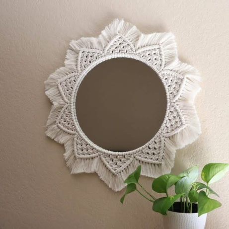 زيادة كمية مرايا مكرمية، 50*50 سم اوف وايت / العرض 50 × الارتفاع 50 سم / خيط قطن