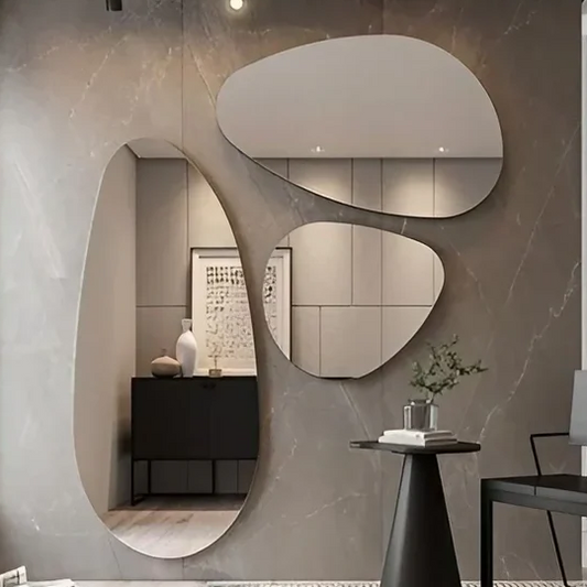 طقم مرايات حائط بإطار خشب ام دي اف، 3 قطع