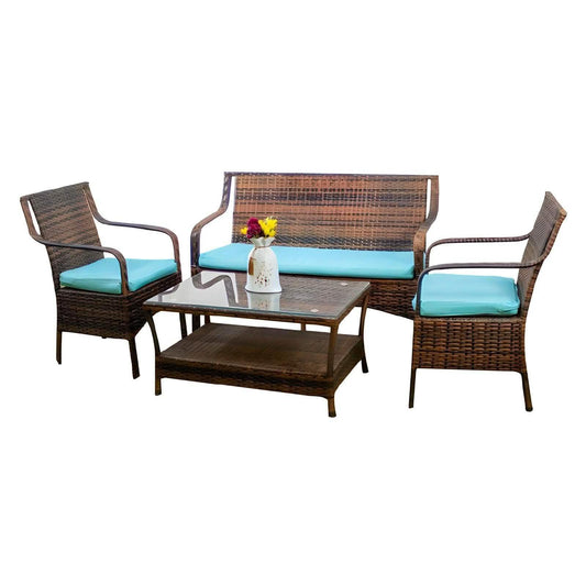 طقم للحدائق معدن و راتان، 4 قطع