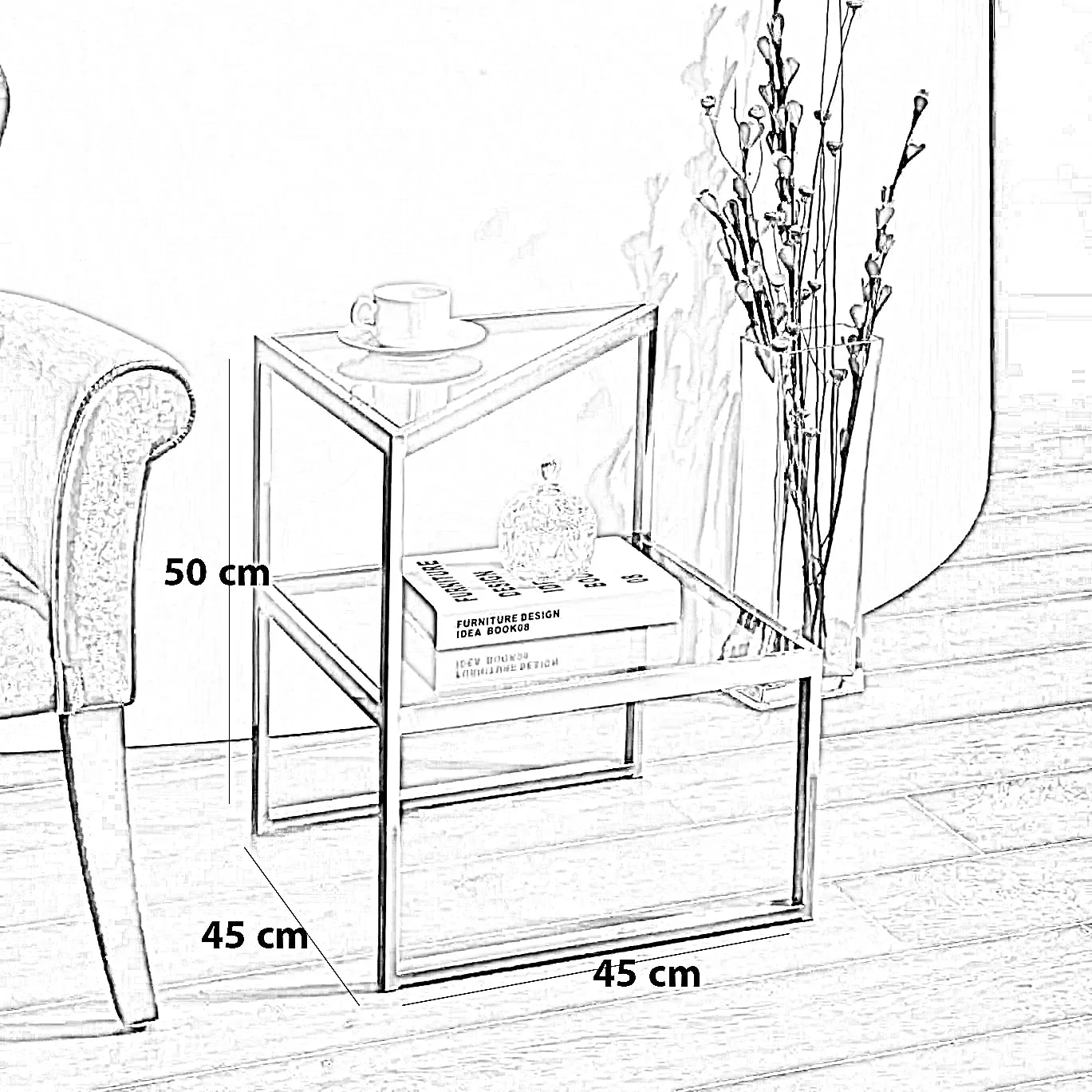 ترابيزة جانبية ستيل بسطح زجاج، 45*45*55 سم