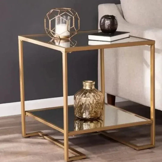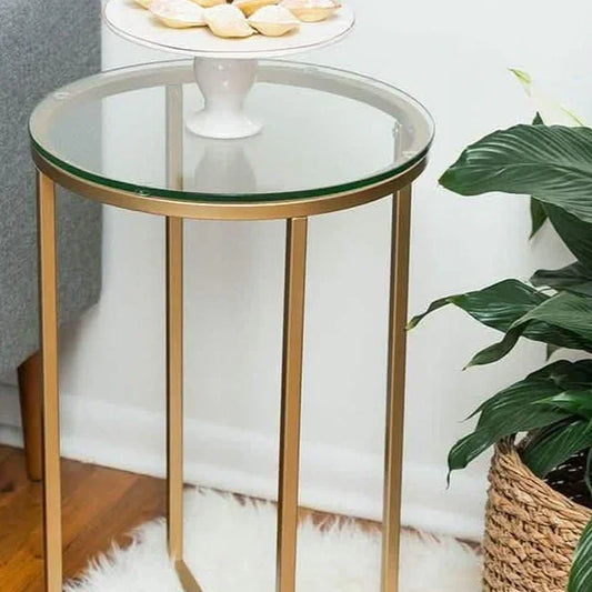 • ترابيزة جانبية معدن بسطح زجاج، 40*40*50 سم