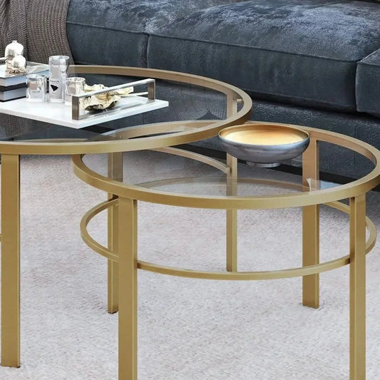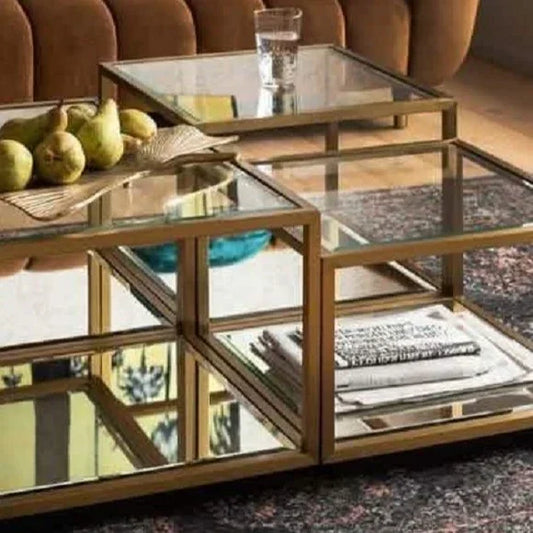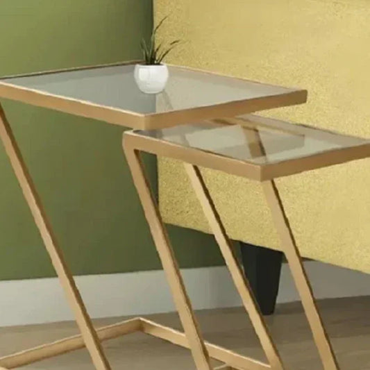 طقم ترابيزات جانبية متداخلة معدن بسطح زجاج، قطعتين