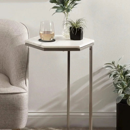 • طقم ترابيزات جانبية ستيل بسطح رخام، قطعتين