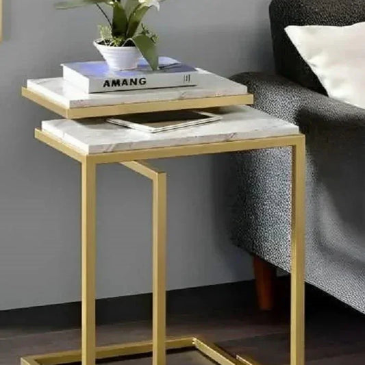 طقم ترابيزات جانبية ستيل بسطح رخام، قطعتين