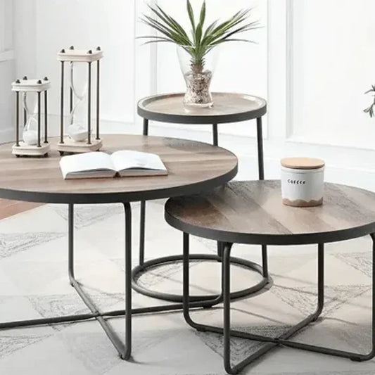 • طقم ترابيزات قهوة معدن بسطح خشبي - CH243 - Homix