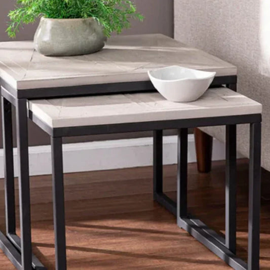 طقم ترابيزات جانبية متداخلة ستيل وام دي اف، قطعتين