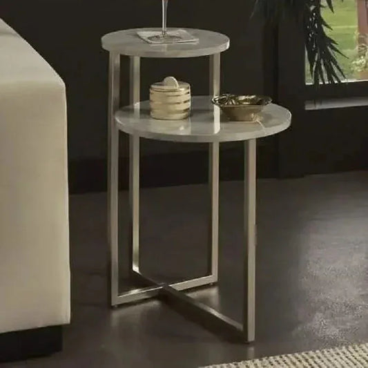 ترابيزة جانبية مزدوجة معدن بسطح رخام