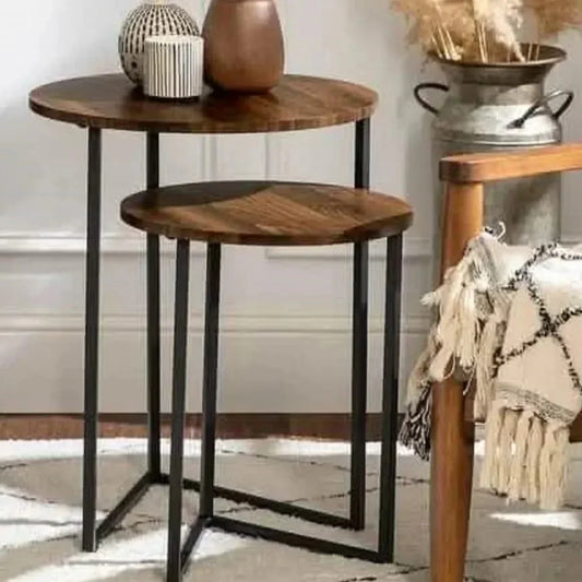 • طقم ترابيزات جانبية متداخلة ستيل وام دي اف، قطعتين
