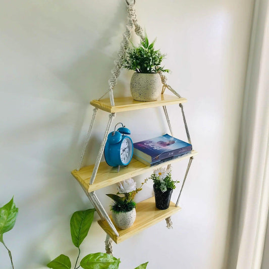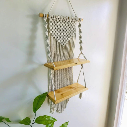 وحدة أرفف مكرمية قطن و خشب موسكي، 33*14*80 سم