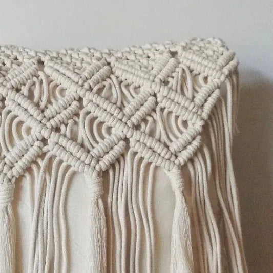 مكرمية حائط خشب طبيعي وقطن، 100*60 سم