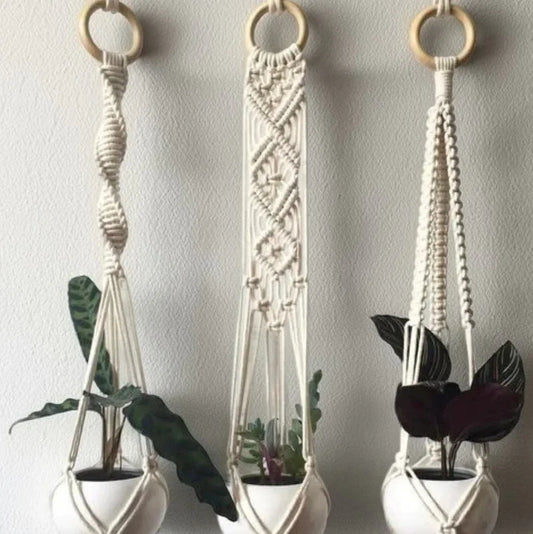 طقم حامل اواني زرع مكرمية قطن، 80 سم - 3 قطع