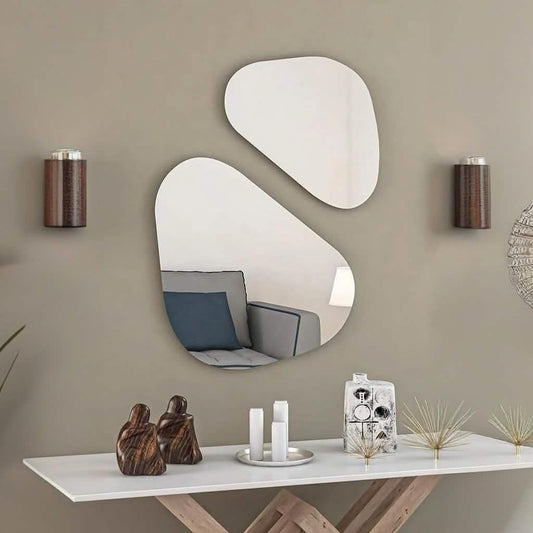 طقم مرايات حائط بإطار خشب ام دي اف، 3 قطع