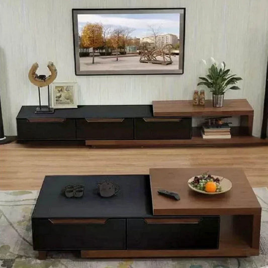 طقم ترابيزة تليفزيون مع ترابيزة قهوة، خشب ام دي اف - قطعتين