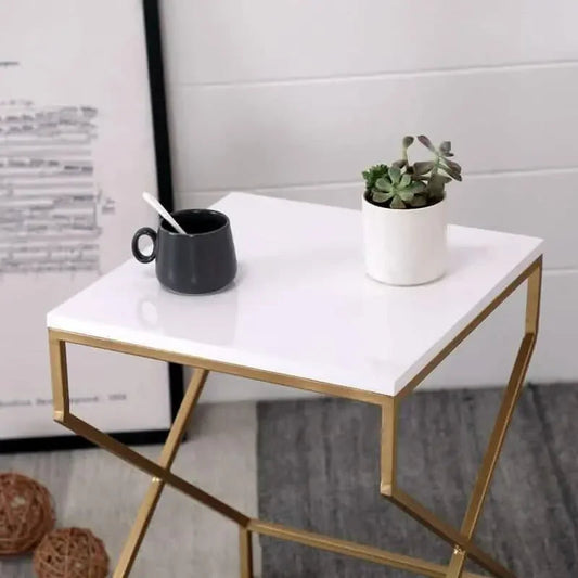 ترابيزة جانبية ستيل بسطح رخام، 40*40*50 سم