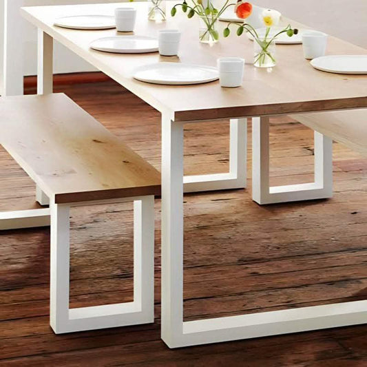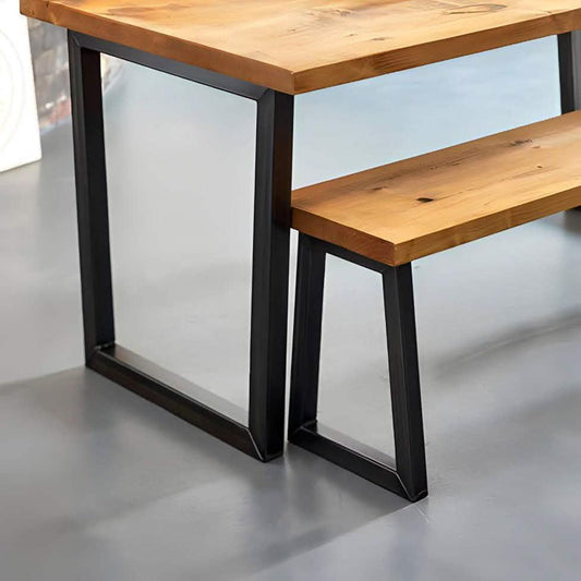 ترابيزة سفرة مع بنش ستيل بسطح خشب، 120*80*80 سم