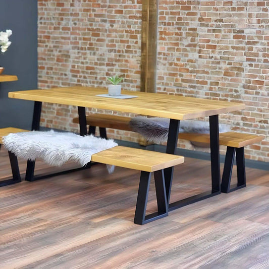 ترابيزة سفرة معدن بسطح خشب، 200*85*80 سم