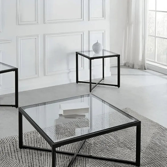 طقم ترابيزات ستيل بسطح زجاج، قطعتين
