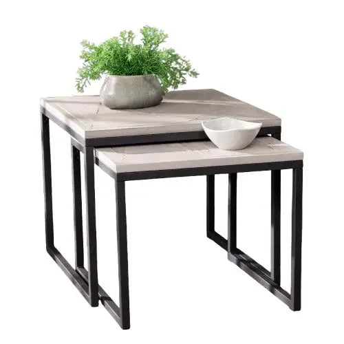 طقم ترابيزات جانبية معدن بسطح رخام، 3 قطع