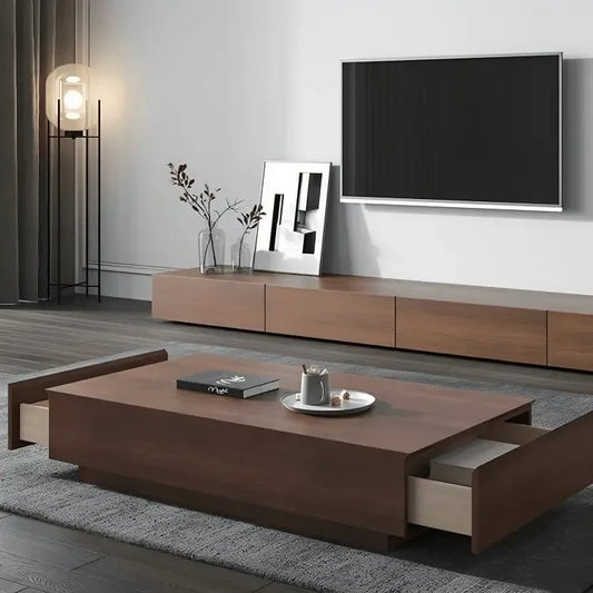 طقم ترابيزة تليفزيون مع ترابيزة قهوة، خشب ام دي اف - قطعتين