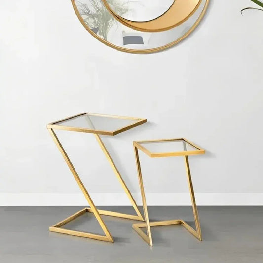 طقم ترابيزات جانبية متداخلة معدن بسطح زجاج، قطعتين