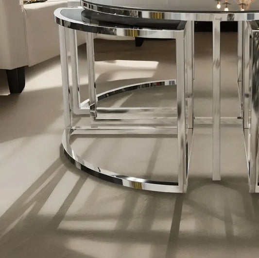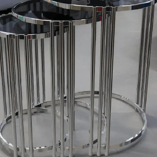 طقم ترابيزات قهوة متداخلة ستيل بسطح زجاج، قطعتين