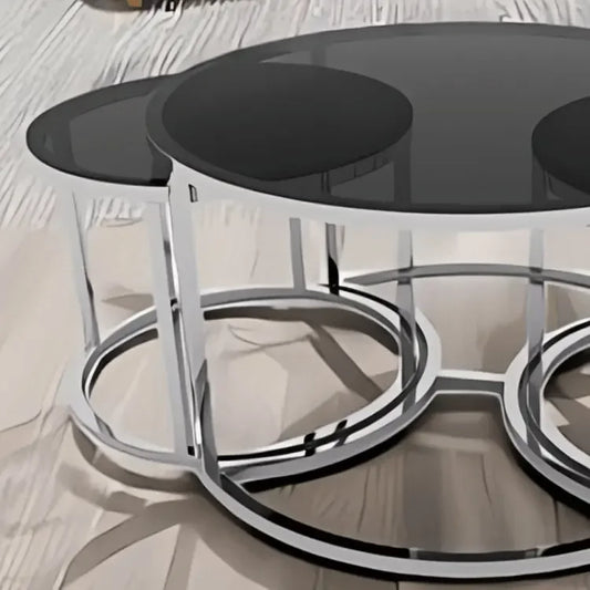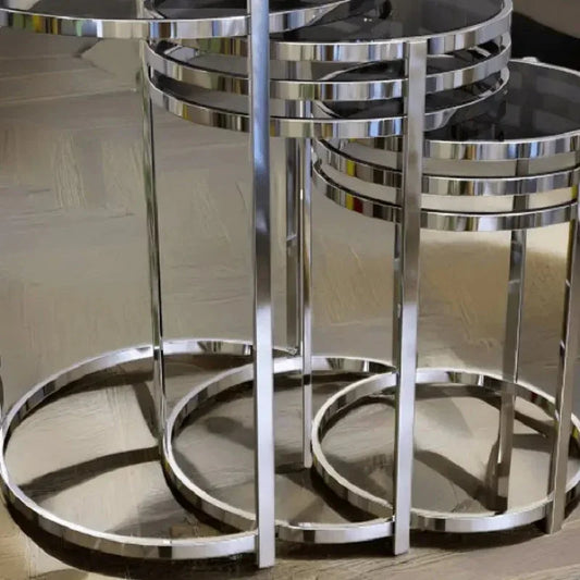 طقم ترابيزات جانبية متداخلة ستيل بسطح زجاج، 3 قطع
