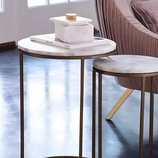 طقم ترابيزات جانبية متداخلة معدن بسطح رخام، قطعتين