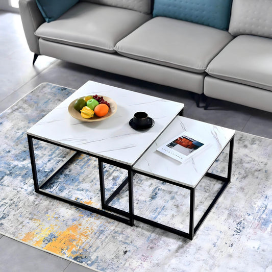 طقم ترابيزات قهوة متداخلة ستيل بسطح رخام، قطعتين