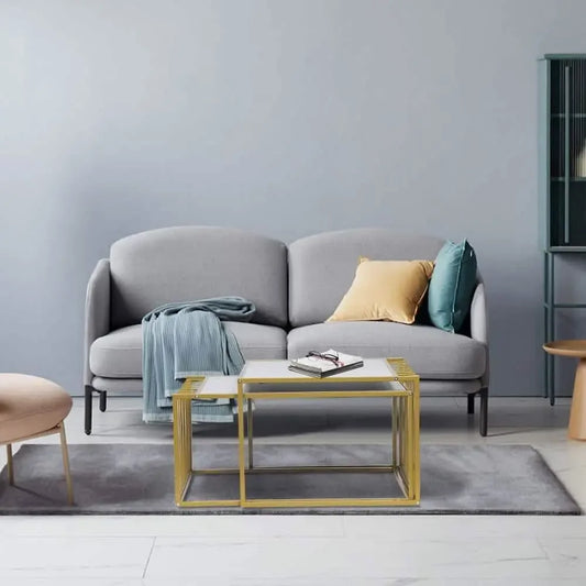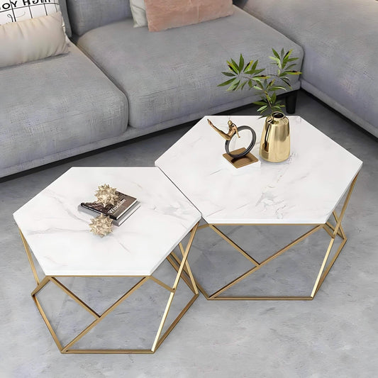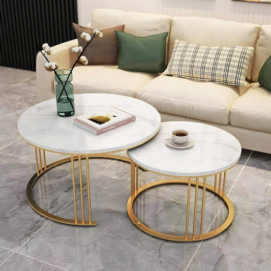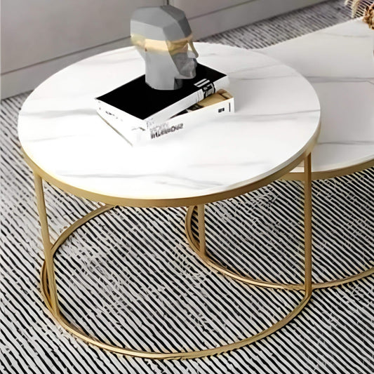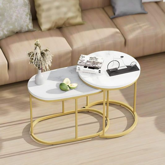 طقم ترابيزات قهوة متداخلة ستيل بسطح رخام، قطعتين