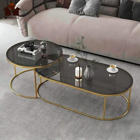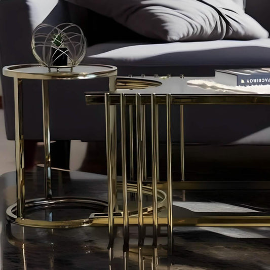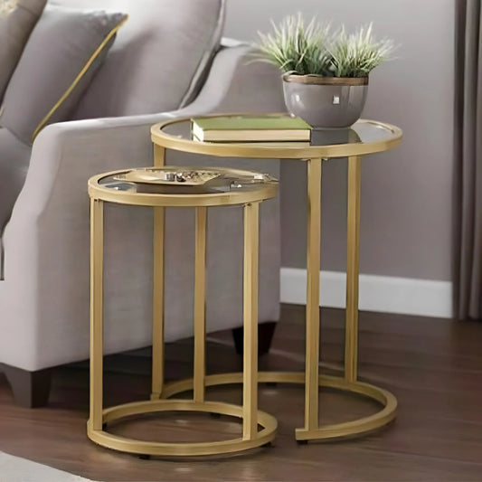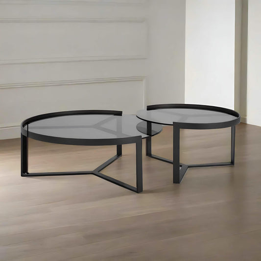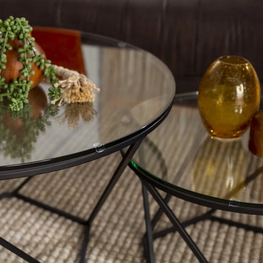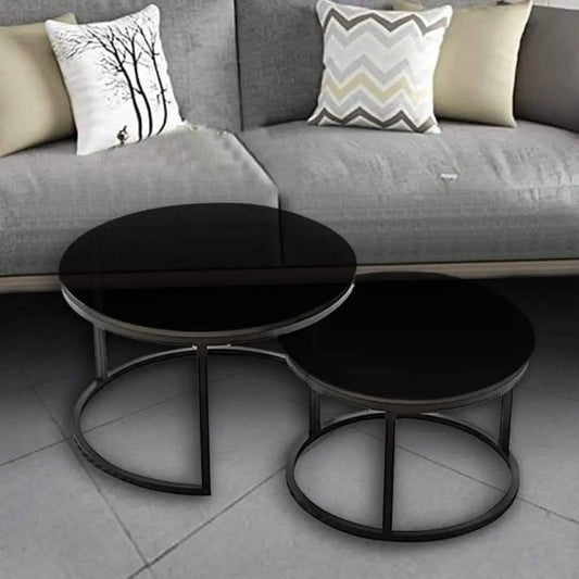 طقم ترابيزات قهوة متداخلة ستيل بسطح زجاج، قطعتين