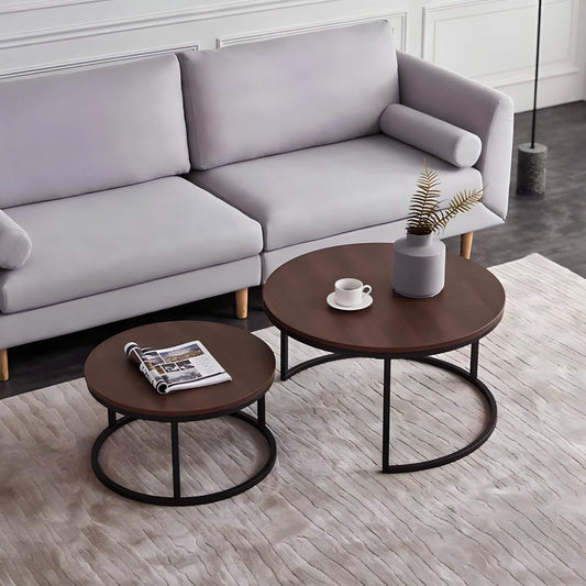 طقم ترابيزات قهوة متداخلة ستيل بسطح خشب، قطعتين