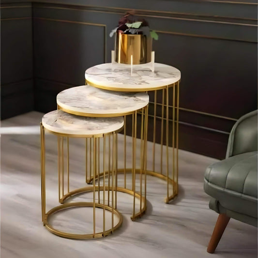 طقم ترابيزات جانبية متداخل ستيل بسطح رخام، 3 قطع