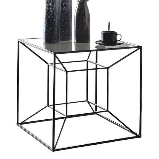 ترابيزة جانبية معدن بسطح زجاج، 40*40*60 سم