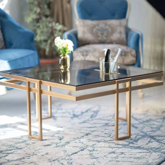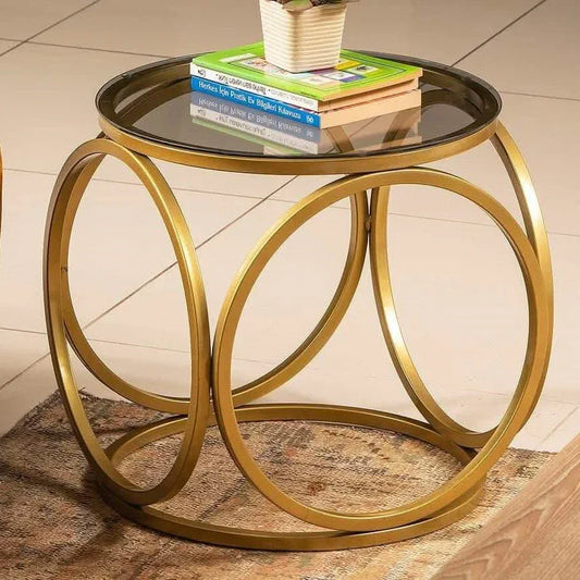 ترابيزة جانبية ستيل بسطح زجاج، 40*40*45 سم- ذهبي