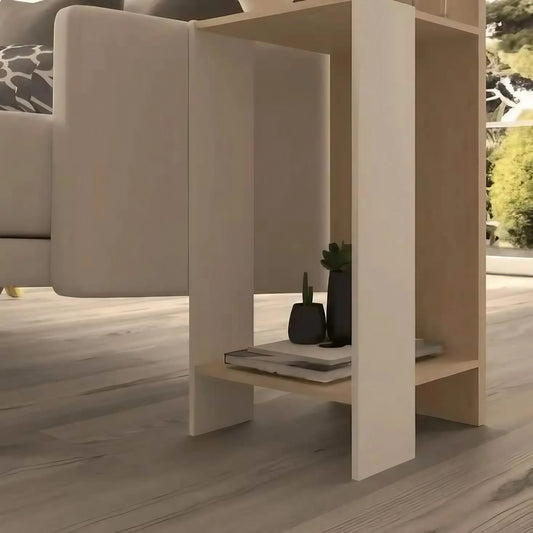 ترابيزة جانبية ام دي اف، 30*40*70 سم - أبيض × بيج