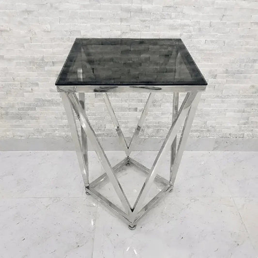 ترابيزة جانبية ستيل بسطح زجاج، 40*40*60 سم