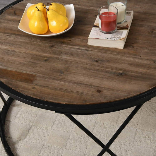 ترابيزة قهوة ستيل بسطح خشب، 80*80*45 سم