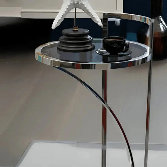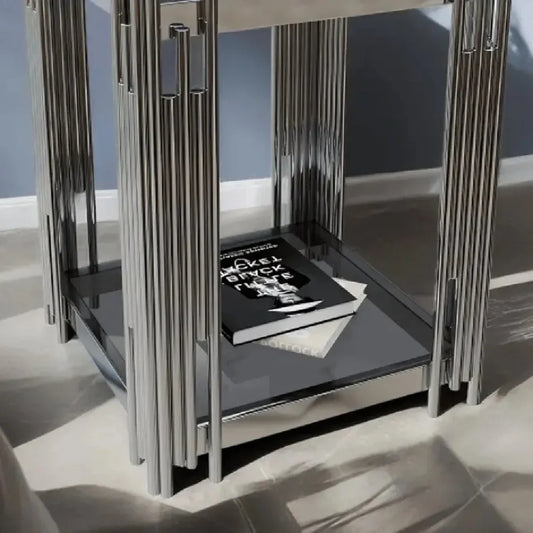 ترابيزة جانبية ستيل بسطح زجاج، 45*45*60 سم